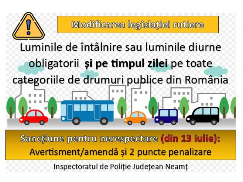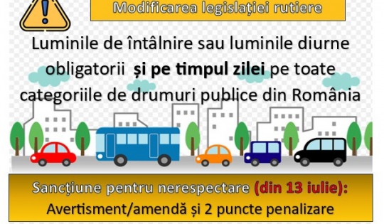 Prin respectarea acestei obligații conducătorii auto vor deveni mai vizibili în trafic, prevenind implicarea într-un eveniment rutier.
