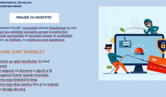 ATENȚIE LA FRAUDELE CU INVESTIȚII!