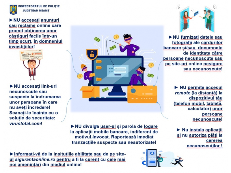 Pentru orice informații suplimentare sau sesizări cu privire la posibile fraude cu investiții, vă îndemnăm să contactați autoritățile competente sau să accesați site-ul oficial al Poliției Române.