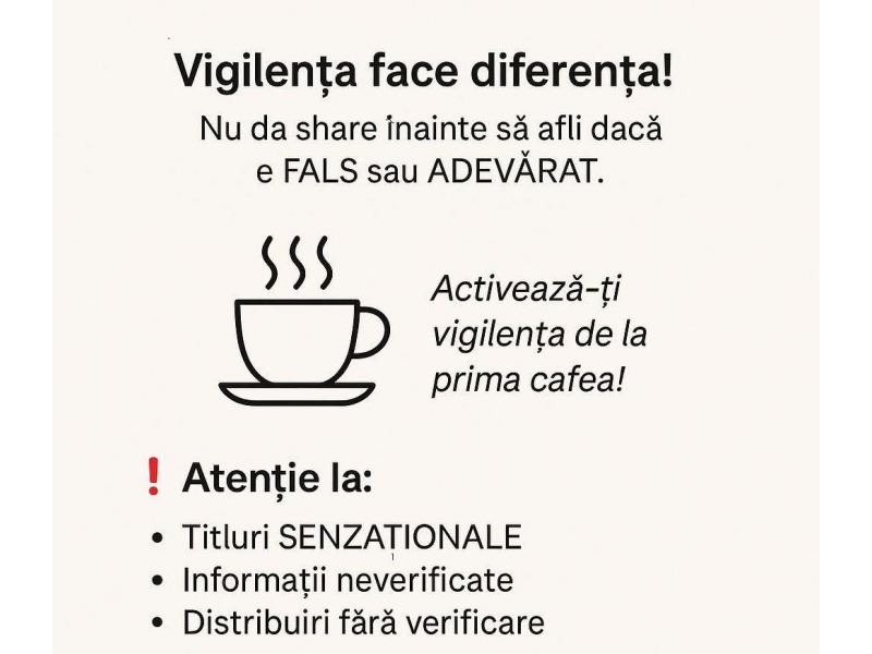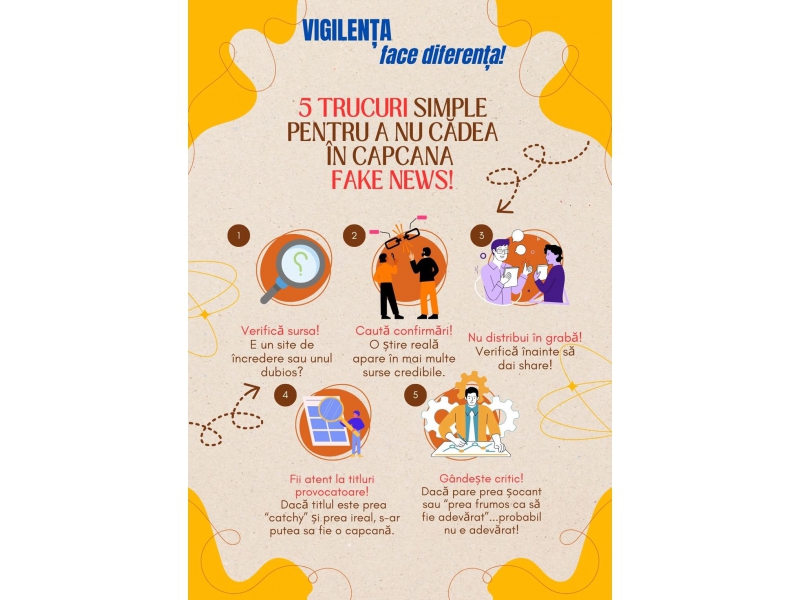 CAMPANIA DE PREVENIRE ȘI CONȘTIENTIZARE CU PRIVIRE LA EFECTELE PROPAGĂRII INFORMAȚIILOR FALSE VIGILENȚA FACE DIFERENȚA!