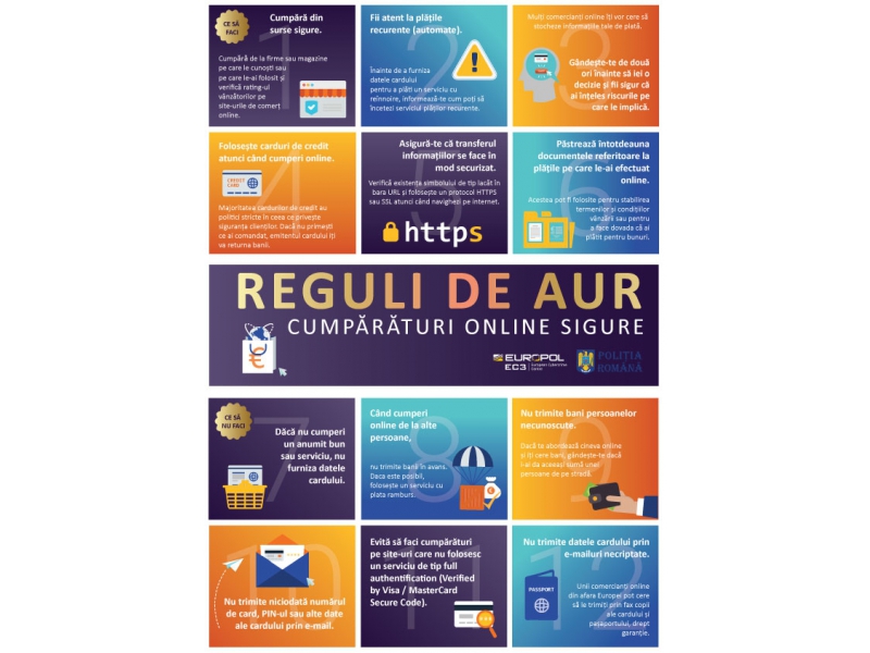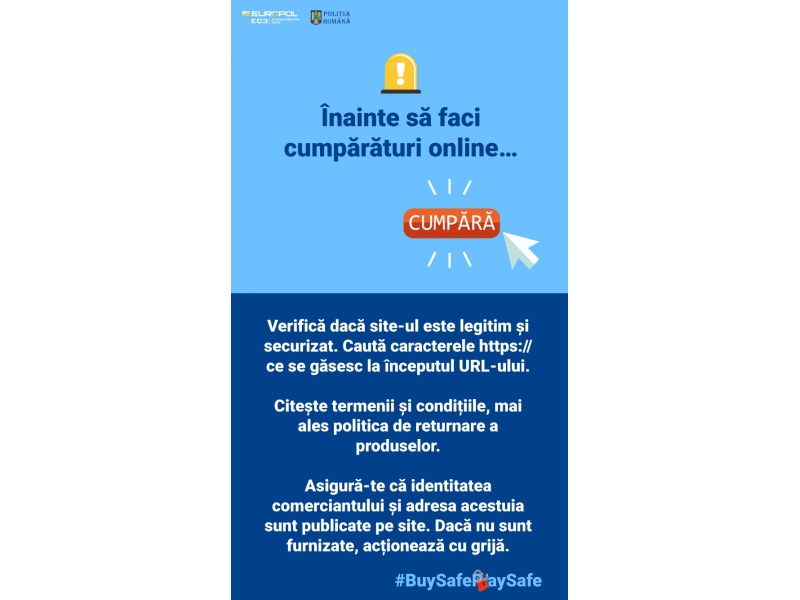 Folosește pe cât posibil site-uri românești,- pot fi mai ușor de detectat eventuale probleme. Verifică înainte să cumperi recenziile site-ului sau ale produsului.