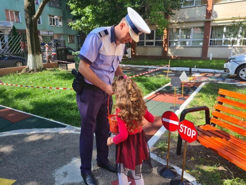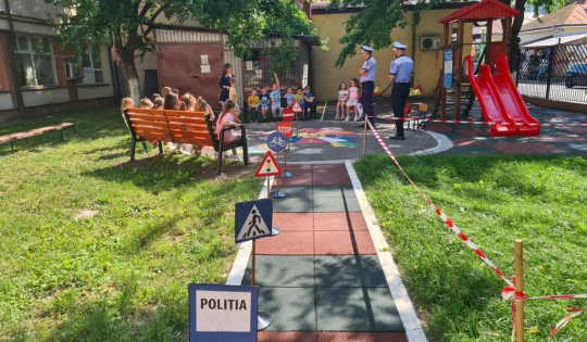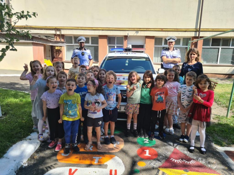 Copiii din cadrul Grădiniţei cu program prelungit Nr.3, din cadrul Școlii Gimnaziale ,,Alexandru Ioan Cuza”, din municipiul Roman, au fost vizitaţi ieri, 3 iunie, de ,,prietenii,, lor, poliţiştii Biroului Rutier Roman, pentru o lecţie de educaţie rutieră.