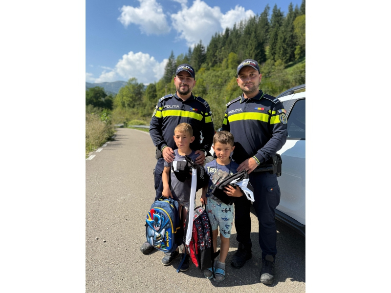 Oamenii legii s-au întors la Andrei și la fratele său geamăn, Cristi, cu daruri care le-a umplut privirea de lumină: hăinuțe, încălțăminte, ghiozdane, rechizite și alimente pentru pachețelul de școală.