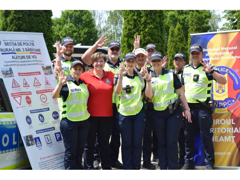 La Săbăoani, bucuria a fost la fel de mare! Aproximativ 1.000 de copii s-au întâlnit cu polițiștii, au urcat în autospeciale, au aflat cum funcționează echipamentele din dotare și au petrecut clipe de neuitat alături de noi. Un moment special a fost premierea patrulei de siguranță rutieră, formată din elevi implicați activ în promovarea regulilor de circulație. Aceștia, prin implicarea polițiștilor și cu spirjinul SNPPC Neamț au fost felicitați cu diplome și cadouri, în semn de recunoaștere pentru responsabilitatea și implicarea lor.