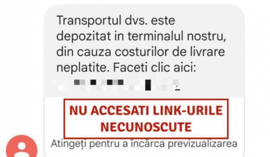 Atenție la mesajele de tipul „Ai un nou mesaj vocalˮ, „Cineva ți-a lăsat un mesajˮ, sau la ofertele de angajare primite prin intermediul unor astfel sms-uri!