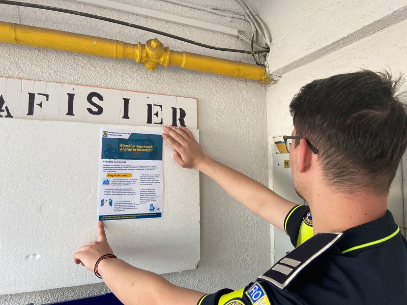 În această săptămână polițiștii de prevenire și cei din cadrul Poliției municipiului Piatra-Neamț desfășoară activități preventive la asociațiile de proprietari, din Piatra-Neamț. Scopul acestor activități este conștientizarea oamenilor privitor la impactul fraudelor cu investiții on-line și modalități de prevenire ale acestor tipuri de infracțiuni.