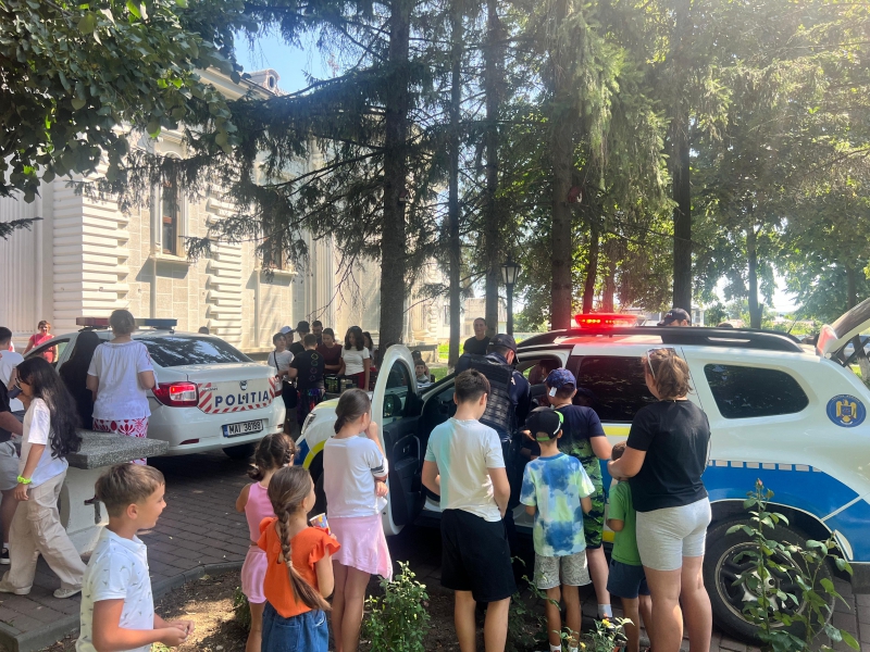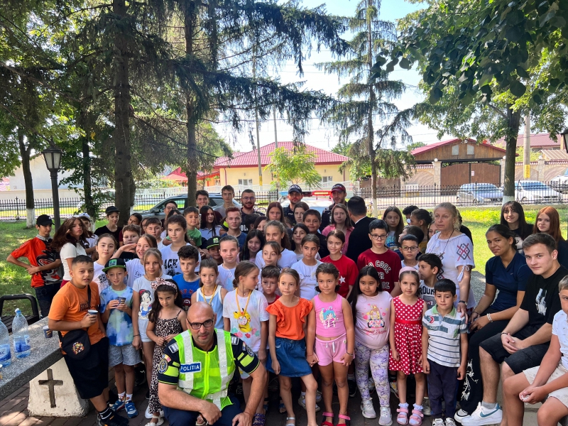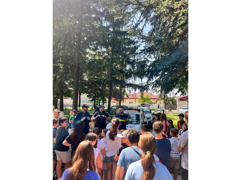 SIRENE, ZÂMBETE ȘI LECȚII DE SIGURANȚĂ: POLIȚIȘTII DIN DULCEȘTI ALĂTURI DE COPIII ȘCOLII DE VARĂ